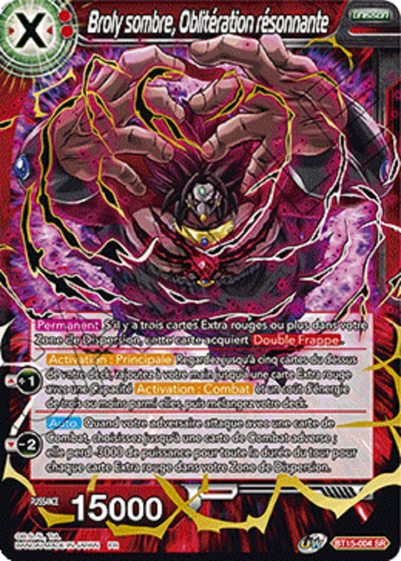 Broly sombre, Oblitération résonnante : BT15-004 , carte Unisson Super Rare du booster Dragon Ball Super Saiyan Showdown (UWS B15)