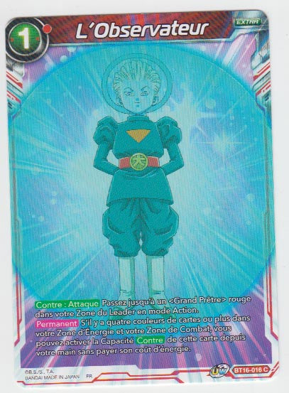 L'Observateur : BT16-016 (C) , carte à l'unité Dragon Ball Super Card Game, du booster Realm of the Gods (BT16).