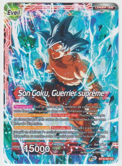 Son Goku // Son Goku, Guerrier suprême : BT16-001 (UC) , carte à l'unité Dragon Ball Super Card Game, du booster Realm of the Gods (BT16).