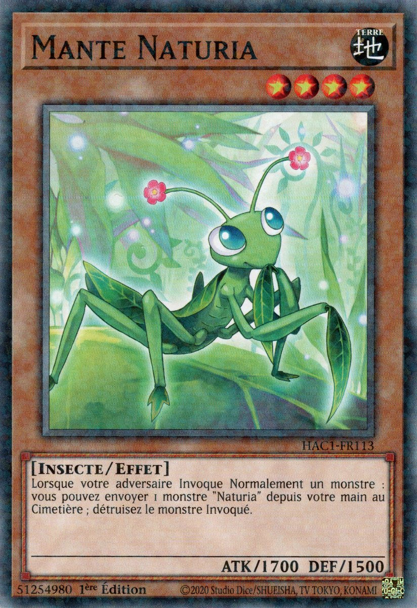Lorsque votre adversaire Invoque Normalement un monstre, vous pouvez envoyer 1 monstre "Naturia" depuis votre main au Cimetière pour détruire ce monstre.