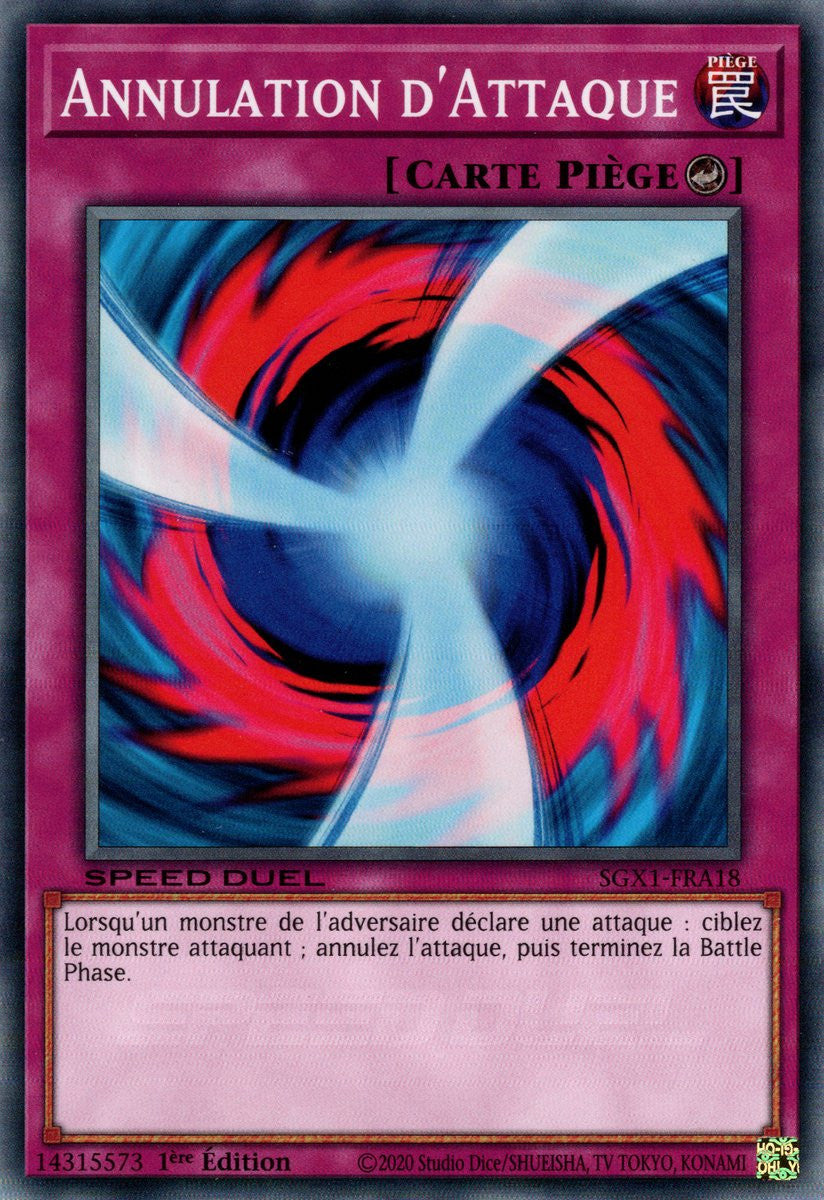 Lorsqu'un monstre de l'adversaire déclare une attaque : ciblez le monstre attaquant ; annulez l'attaque, puis terminez la Battle Phase.