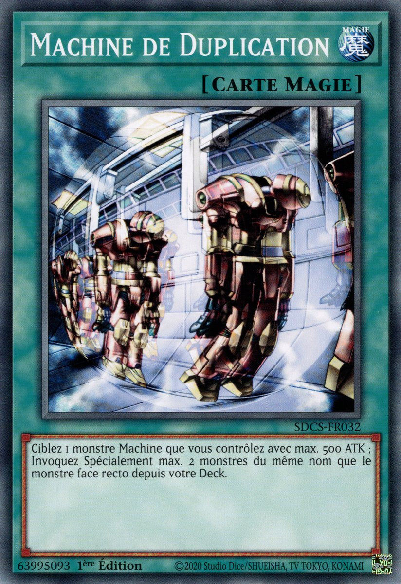 Ciblez 1 monstre Machine que vous contrôlez avec max. 500 ATK ; Invoquez Spécialement max. 2 monstres du même nom que le monstre face recto depuis votre Deck.