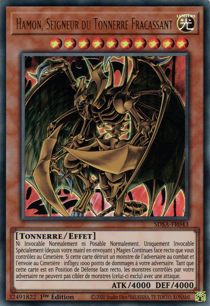 Hamon, Seigneur du Tonnerre Fracassant  Ultra RareLUMIÈRE LUMIÈRE Niveau Niveau 10 [ Tonnerre / Effet ] ATK 4000 DEF 4000