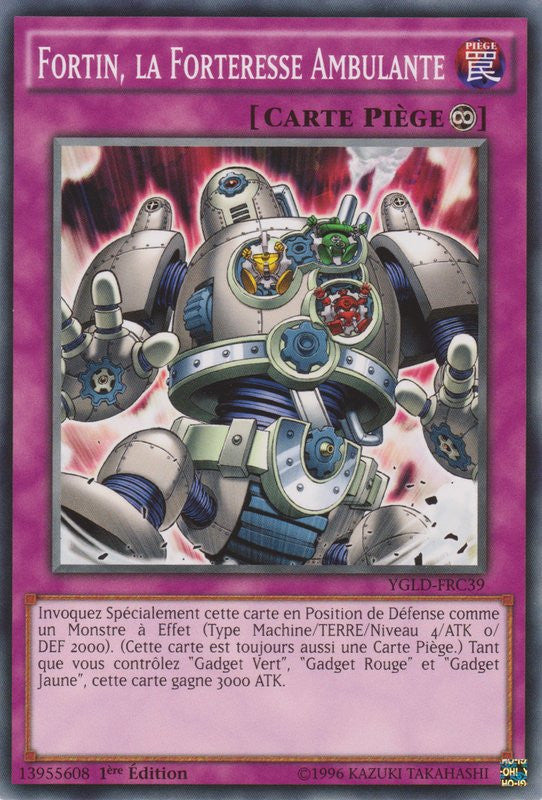 Invoquez Spécialement cette carte en Position de Défense comme un Monstre à Effet (Type Machine/TERRE/Niveau 4/ATK 0/DEF 2000). (Cette carte est toujours aussi une Carte Piège.) Tant que vous contrôlez "Gadget Vert", "Gadget Rouge" et "Gadget Jaune", cette carte gagne 3000 ATK.