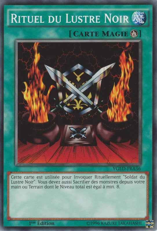 Cette carte est utilisée pour Invoquer Rituellement "Soldat du Lustre Noir". Vous devez aussi Sacrifier des monstres depuis votre main ou Terrain dont le Niveau total est égal à min. 8.
