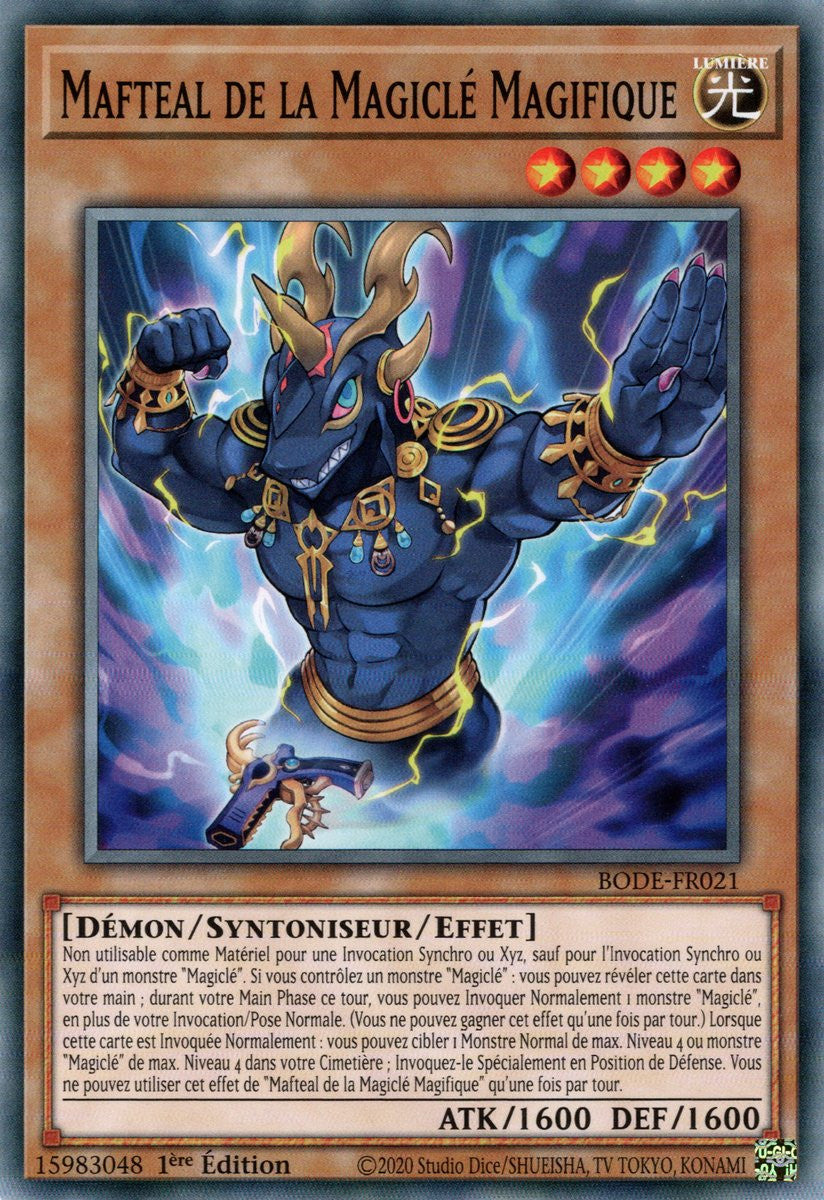 Non utilisable comme Matériel pour une Invocation Synchro ou Xyz, sauf pour l'Invocation Synchro ou Xyz d'un monstre "Magiclé". Si vous contrôlez un monstre "Magiclé" : vous pouvez révéler cette carte dans votre main ; durant votre Main Phase ce tour, vous pouvez Invoquer Normalement 1 monstre "Magiclé", en plus de votre Invocation/Pose Normale. (Vous ne pouvez gagner cet effet qu'une fois par tour.) Lorsque cette carte est Invoquée Normalement : vous pouvez cibler 1 Monstre Normal de max. Niveau 4 ou monstre "Magiclé" de max. Niveau 4 dans votre Cimetière ; Invoquez-le Spécialement en Position de Défense. Vous ne pouvez utiliser cet effet de "Mafteal de la Magiclé Magifique" qu'une fois par tour.