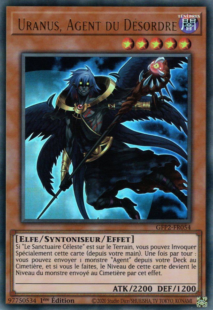 Si "Le Sanctuaire Céleste" est sur le Terrain, vous pouvez Invoquer Spécialement cette carte (depuis votre main). Une fois par tour : vous pouvez envoyer 1 monstre "Agent" depuis votre Deck au Cimetière, et si vous le faites, le Niveau de cette carte devient du Niveau du monstre envoyé au Cimetière par cet effet.