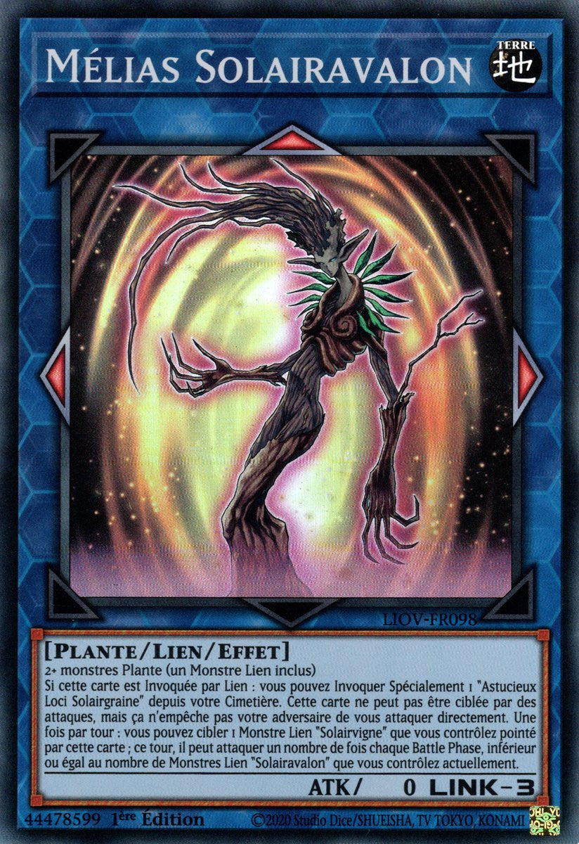 Si cette carte est Invoquée par Lien : vous pouvez Invoquer Spécialement 1 "Astucieux Loci Solairgraine" depuis votre Cimetière. Cette carte ne peut pas être ciblée par des attaques, mais ça n'empêche pas votre adversaire de vous attaquer directement. Une fois par tour : vous pouvez cibler 1 Monstre Lien "Solairvigne" que vous contrôlez pointé par cette carte ; ce tour, il peut attaquer un nombre de fois chaque Battle Phase, inférieur ou égal au nombre de Monstres Lien "Solairavalon" que vous contrôlez actuellement.