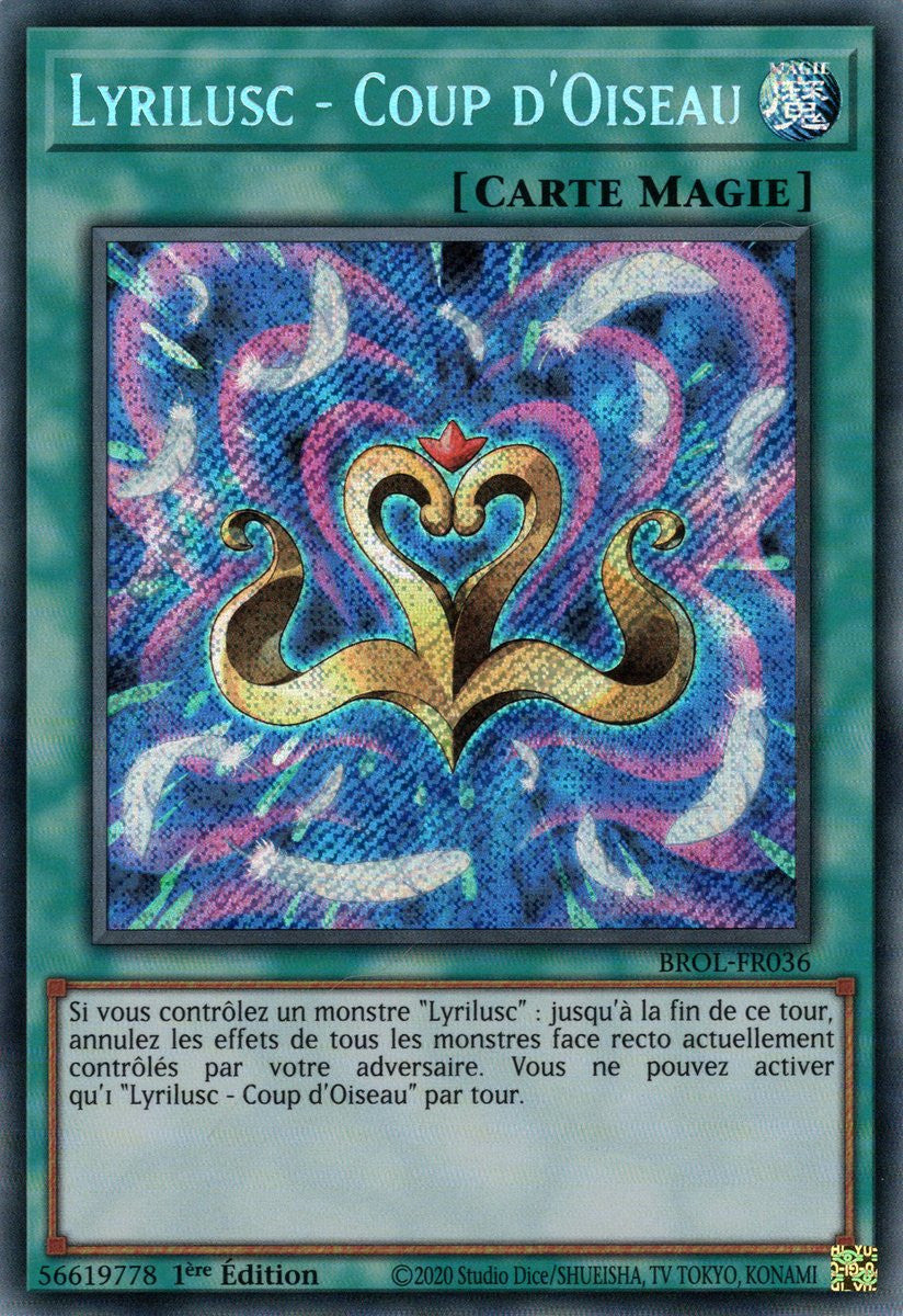 Si vous contrôlez un monstre "Lyrilusc" : jusqu'à la fin de ce tour, annulez les effets de tous les monstres face recto actuellement contrôlés par votre adversaire. Vous ne pouvez activer qu'1 "Lyrilusc - Coup d'Oiseau" par tour.
