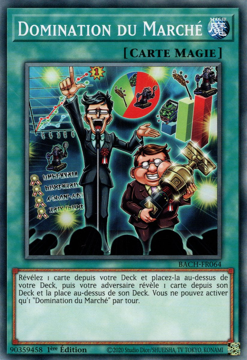 Révélez 1 carte depuis votre Deck et placez-la au-dessus de votre Deck, puis votre adversaire révèle 1 carte depuis son Deck et la place au-dessus de son Deck. Vous ne pouvez activer qu'1 "Domination du Marché" par tour.