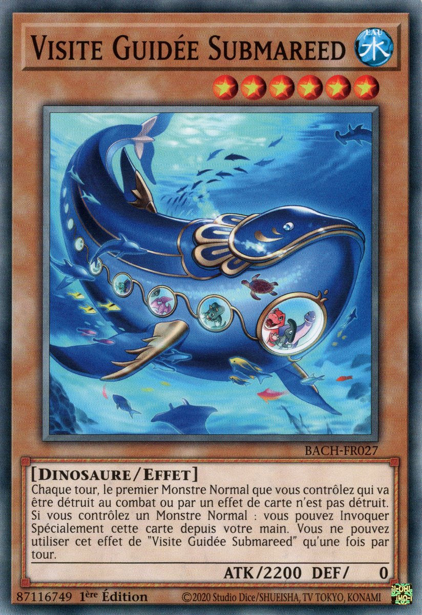 Chaque tour, le premier Monstre Normal que vous contrôlez qui va être détruit au combat ou par un effet de carte n'est pas détruit. Si vous contrôlez un Monstre Normal : vous pouvez Invoquer Spécialement cette carte depuis votre main. Vous ne pouvez utiliser cet effet de "Visite Guidée Submareed" qu'une fois par tour.