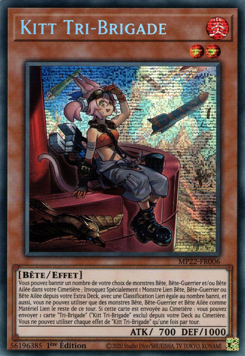 Vous pouvez bannir un nombre de votre choix de monstres Bête, Bête-Guerrier et/ou Bête Ailée dans votre Cimetière ; Invoquez Spécialement 1 Monstre Lien Bête, Bête-Guerrier ou Bête Ailée depuis votre Extra Deck, avec une Classification Lien égale au nombre banni, et aussi, vous ne pouvez utiliser que des monstres Bête, Bête-Guerrier et Bête Ailée comme Matériel Lien le reste de ce tour. Si cette carte est envoyée au Cimetière : vous pouvez envoyer 1 carte "Tri-Brigade" ("Kitt Tri-Brigade" exclu) depuis votre Deck au Cimetière. Vous ne pouvez utiliser chaque effet de "Kitt Tri-Brigade" qu'une fois par tour.