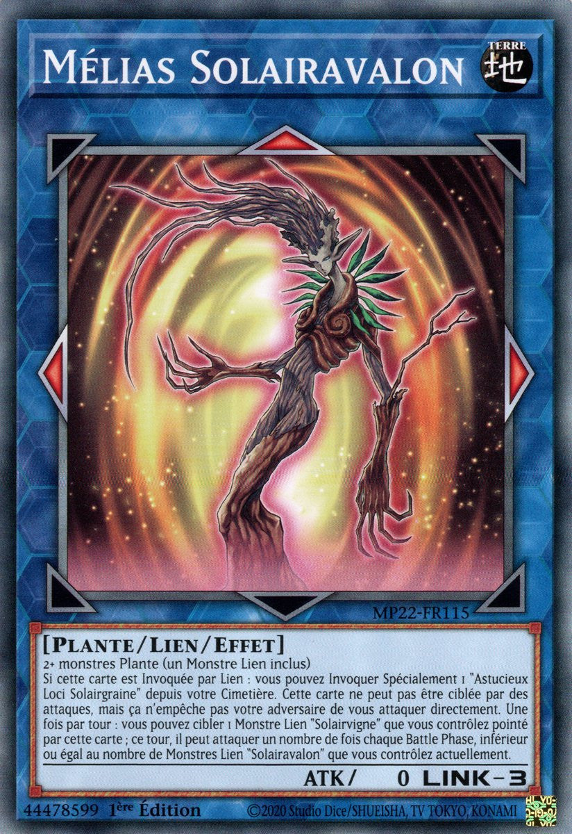 Si cette carte est Invoquée par Lien : vous pouvez Invoquer Spécialement 1 "Astucieux Loci Solairgraine" depuis votre Cimetière. Cette carte ne peut pas être ciblée par des attaques, mais ça n'empêche pas votre adversaire de vous attaquer directement. Une fois par tour : vous pouvez cibler 1 Monstre Lien "Solairvigne" que vous contrôlez pointé par cette carte ; ce tour, il peut attaquer un nombre de fois chaque Battle Phase, inférieur ou égal au nombre de Monstres Lien "Solairavalon" que vous contrôlez actuellement.