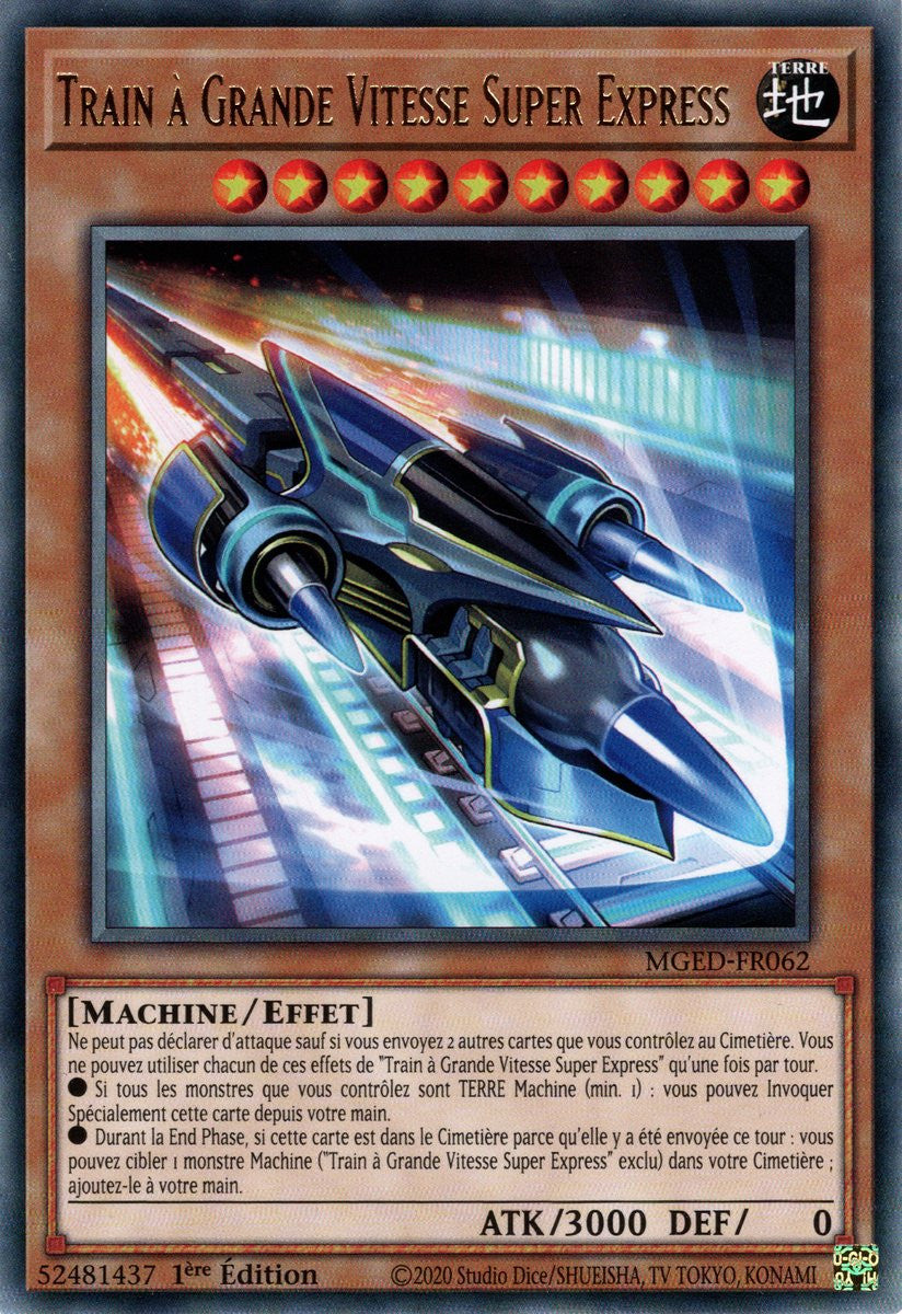 Ne peut pas déclarer d'attaque sauf si vous envoyez 2 autres cartes que vous contrôlez au Cimetière. Vous ne pouvez utiliser chacun de ces effets de "Train à Grande Vitesse Super Express" qu'une fois par tour.