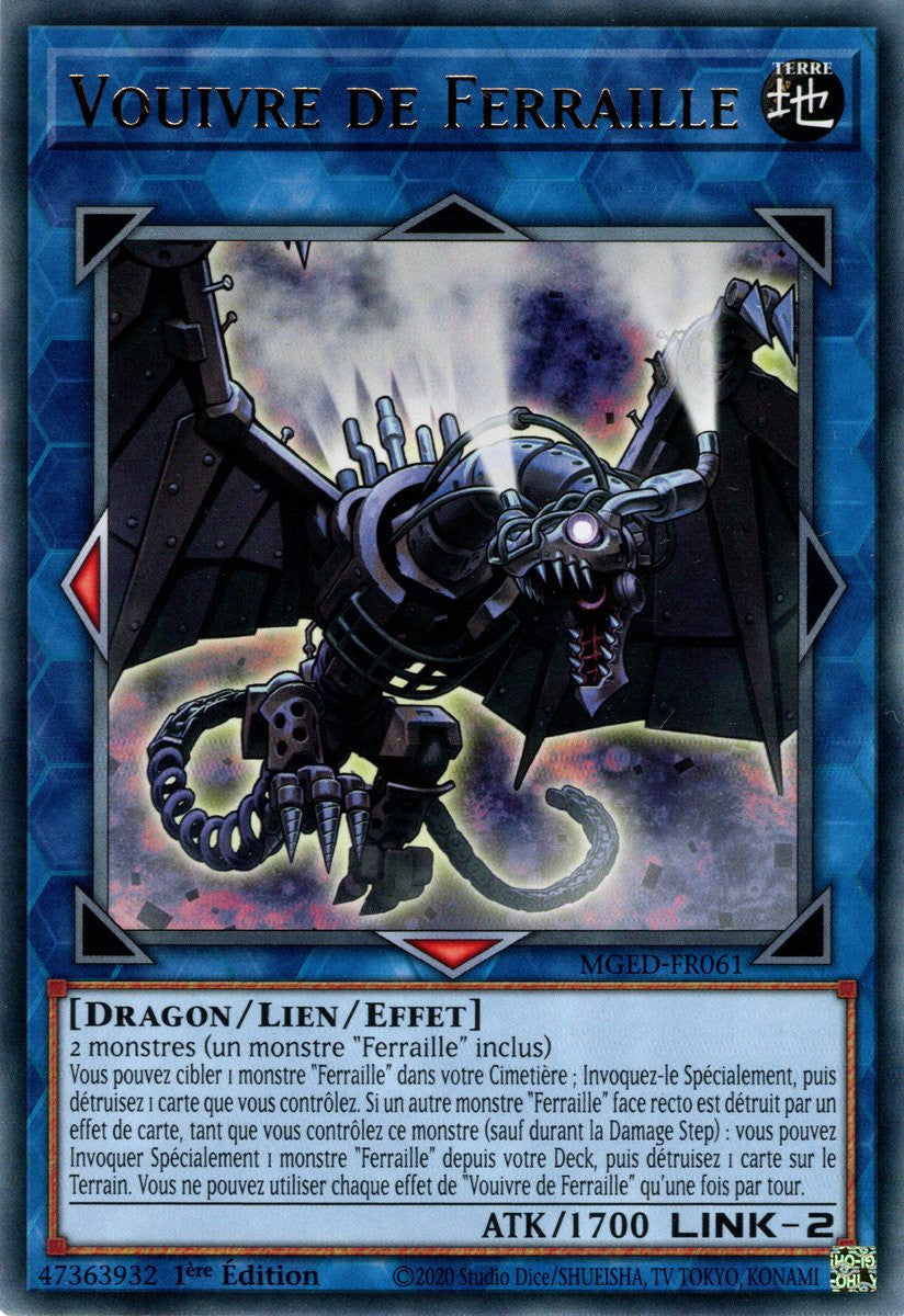 Vous pouvez cibler 1 monstre "Ferraille" dans votre Cimetière ; Invoquez-le Spécialement, puis détruisez 1 carte que vous contrôlez. Si un autre monstre "Ferraille" face recto est détruit par un effet de carte, tant que vous contrôlez ce monstre (sauf durant la Damage Step) : vous pouvez Invoquer Spécialement 1 monstre "Ferraille" depuis votre Deck, puis détruisez 1 carte sur le Terrain. Vous ne pouvez utiliser chaque effet de "Vouivre de Ferraille" qu'une fois par tour.