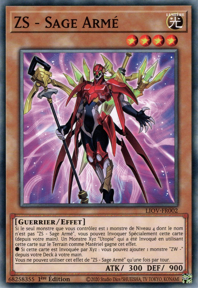 Si le seul monstre que vous contrôlez est 1 monstre de Niveau 4 dont le nom n'est pas "ZS - Sage Armé", vous pouvez Invoquer Spécialement cette carte (depuis votre main). Un Monstre Xyz "Utopie" qui a été Invoqué en utilisant cette carte sur le Terrain comme Matériel gagne cet effet.