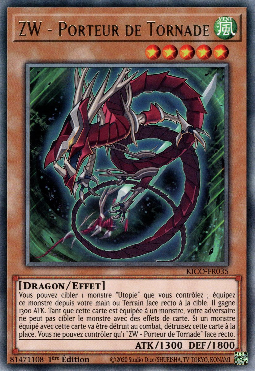 Vous pouvez cibler 1 monstre "Utopie" que vous contrôlez ; équipez ce monstre depuis votre main ou Terrain face recto à la cible. Il gagne 1300 ATK. Tant que cette carte est équipée à un monstre, votre adversaire ne peut pas cibler le monstre avec des effets de carte. Si un monstre équipé avec cette carte va être détruit au combat, détruisez cette carte à la place. Vous ne pouvez contrôler qu'1 "ZW - Porteur de Tornade" face recto.